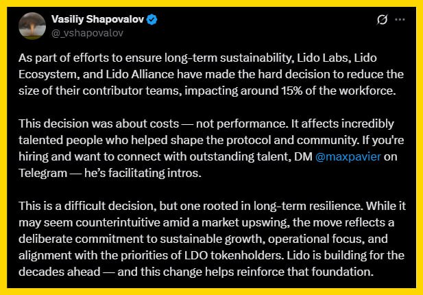 News of Lido’s 15% staff reduction in early August, confirmed by co-founder Vasiliy Shapovalov, has sent ripples through the crypto